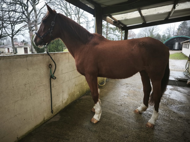 Non montable actuellement mais pourrait l'être de nouveau, par un cavalier de niveau galop 6/7, après remise au travail progressive - diagnostic vétérinaire positif (à présenter à GPLV)